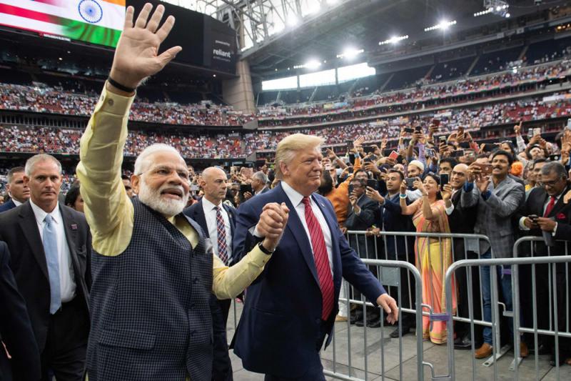 综合《纽约时报》、路透社报道:美国总统特朗普22日陪同印度总理莫迪,参加了印度裔美国人协会在得州休斯敦举办的“莫迪你好”(Howdy Modi)活动。其间两人大秀友谊,显露出美印贸易战有望和解。另外,特朗普希望藉机将印度裔选民从民主党阵营拉拢过来,莫迪则希望通过外交成就,来抵挡国内外对他在克什米尔问题上强硬手段的批评。